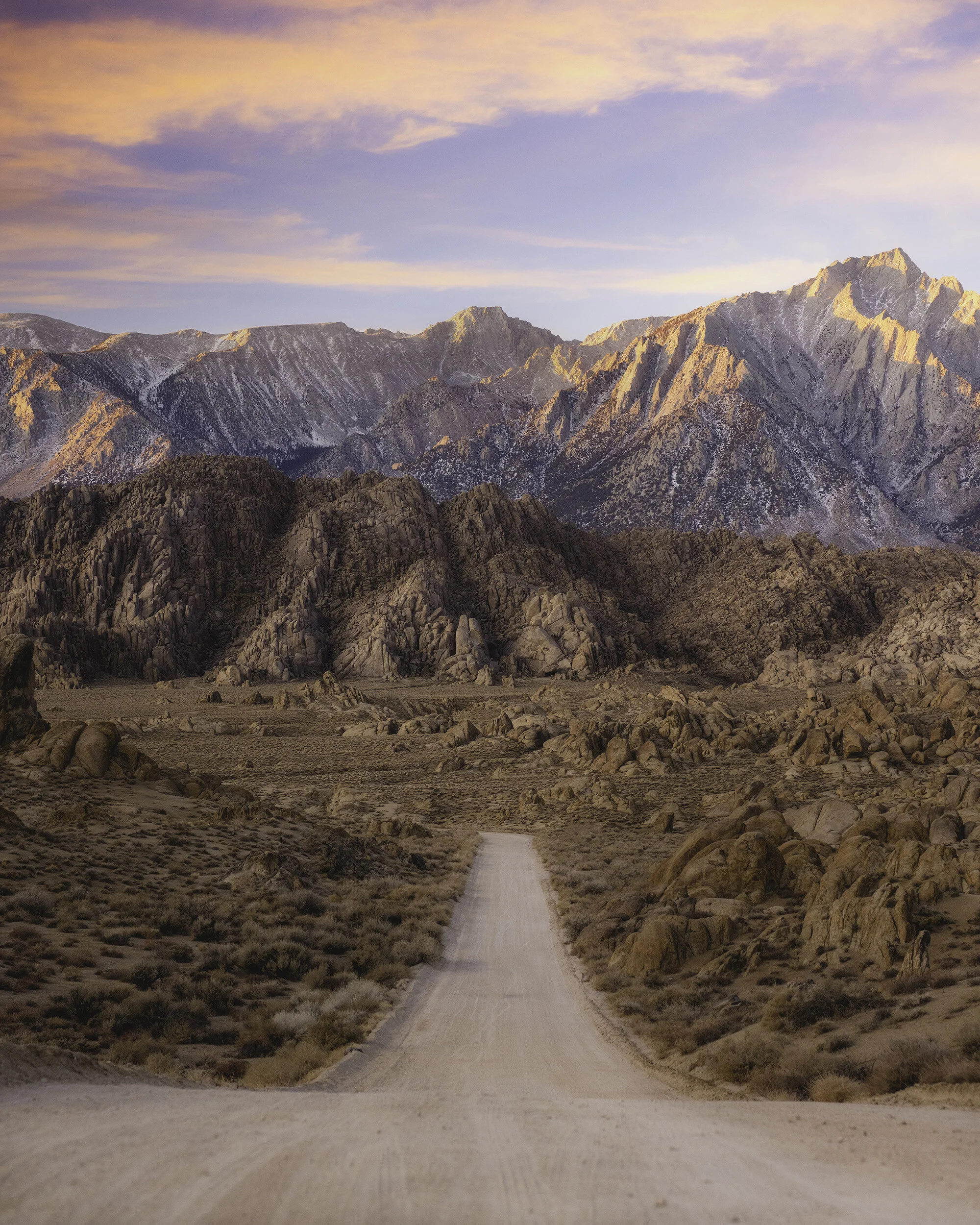 The Alabama Hills are iconic, let’s walk through a few recommendations to capture that bucket list shot! It’s best to visit the Alabama Hills at sunrise, to allow the sun to set behind you. As the sun rises, it fades over the mountains creating a beautiful glow. There’s also a big chance you’ll get it all to yourself! Giving you plenty of time to enjoy running down the open road and snapping a few fun photos! Of course the Alabama Hills can still be enjoyed at sunset or any time of day.